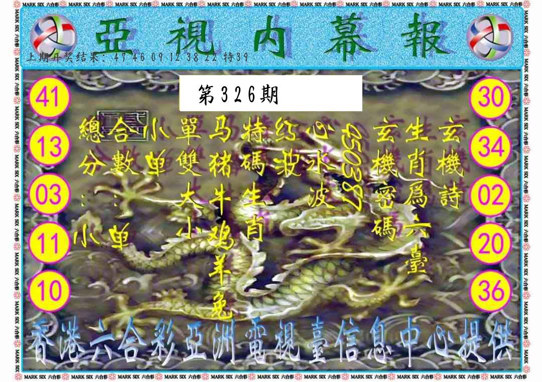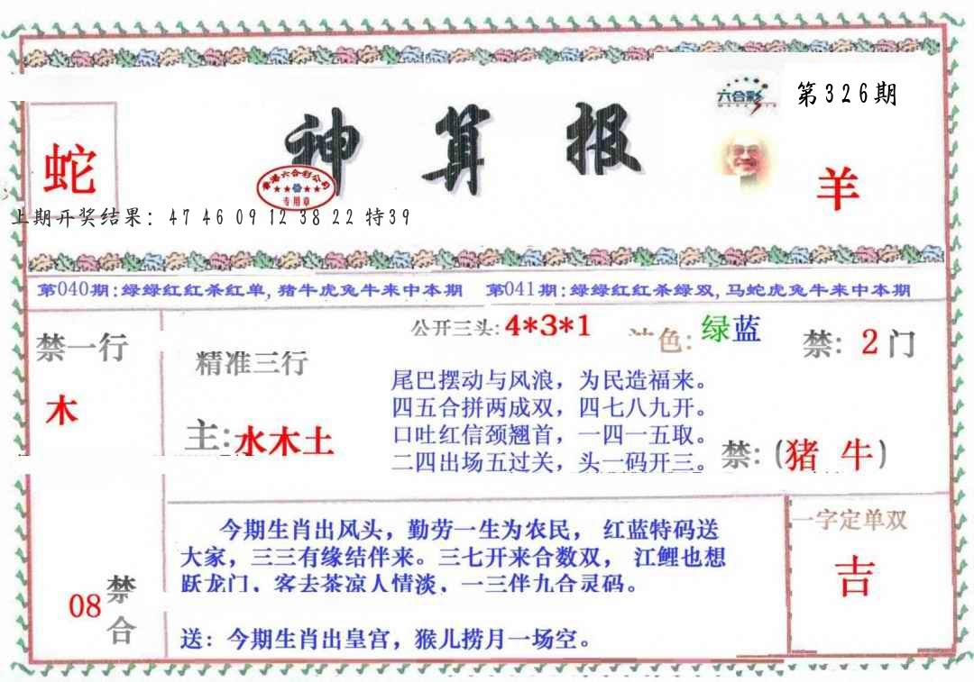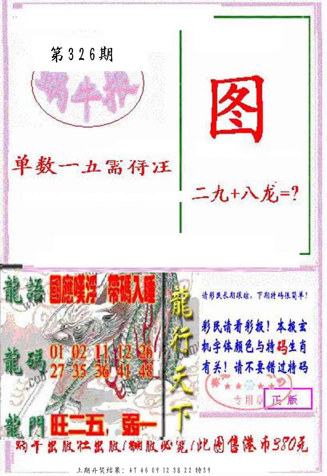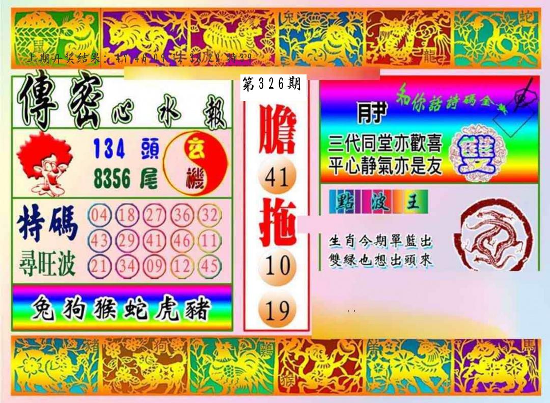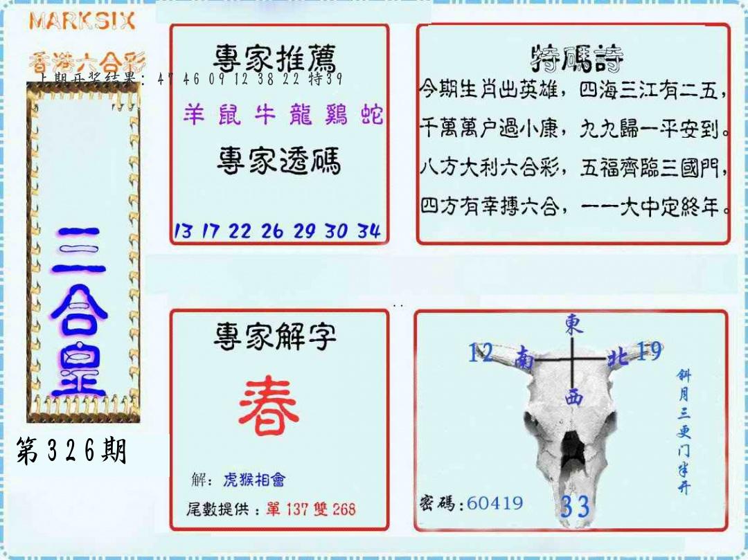 | 326期:九肖 | 龙马羊牛鼠虎兔猪狗 | 开:???? |