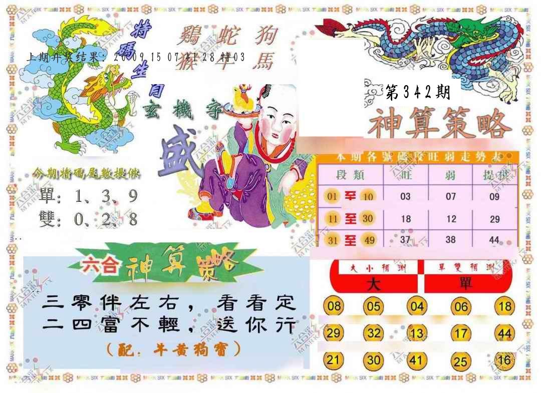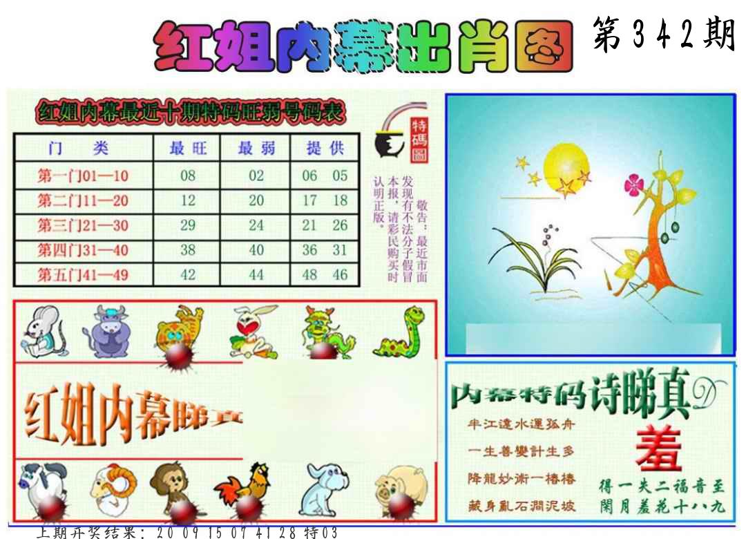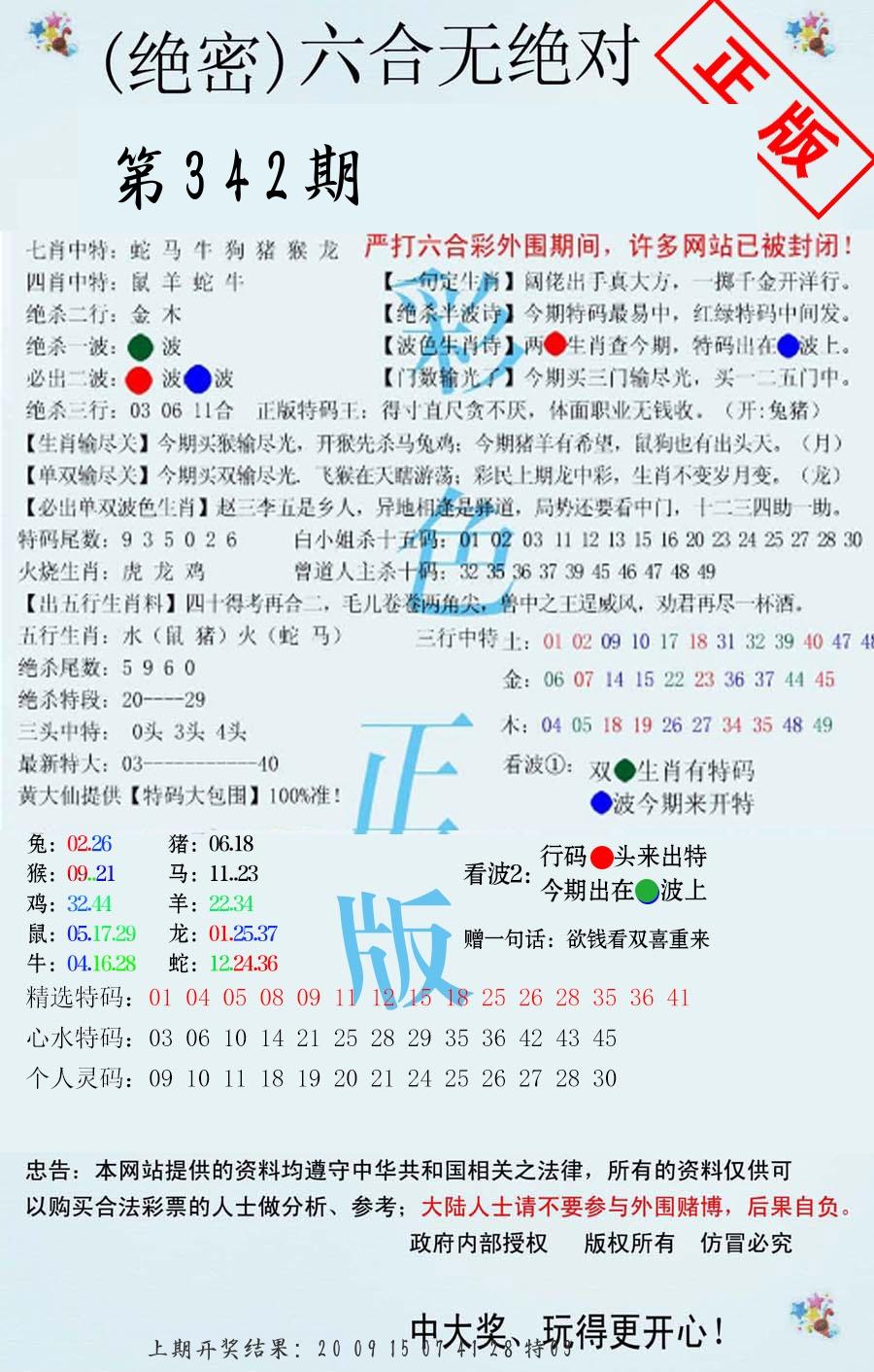 | 009期 | 牛鸡狗蛇龙兔马 | 42鼠 |